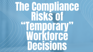 The Compliance Risks of “Temporary” Workforce Decisions When Short-Term Fixes Create Long-Term Liability Organizations frequently make “temporary” workforce decisions to respond to uncertainty—hiring contractors instead